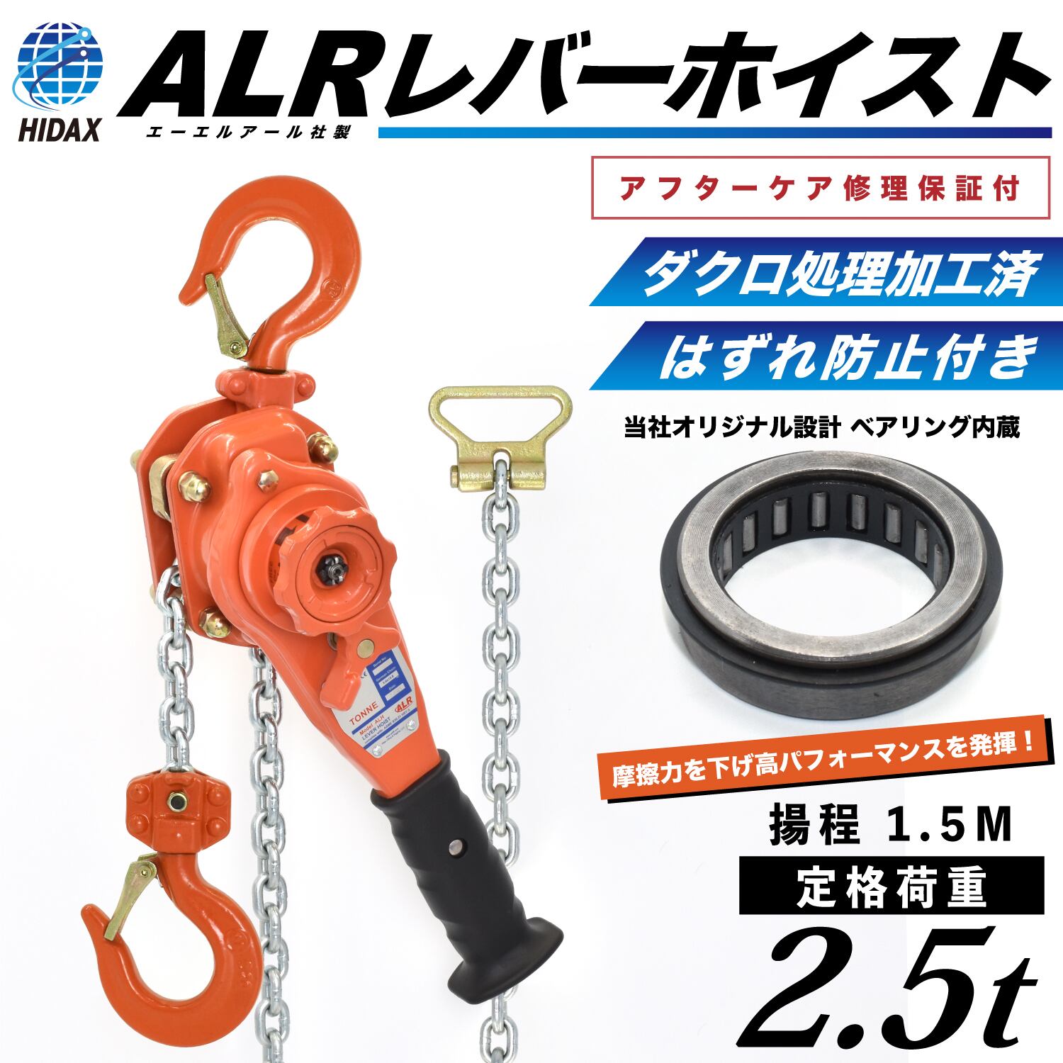 米国ALR (Atlas Lifting & Rigging) 社のレバーホイストを、日本市場向けに部品のグレードアップを行い、安定した品質を実現致しました。